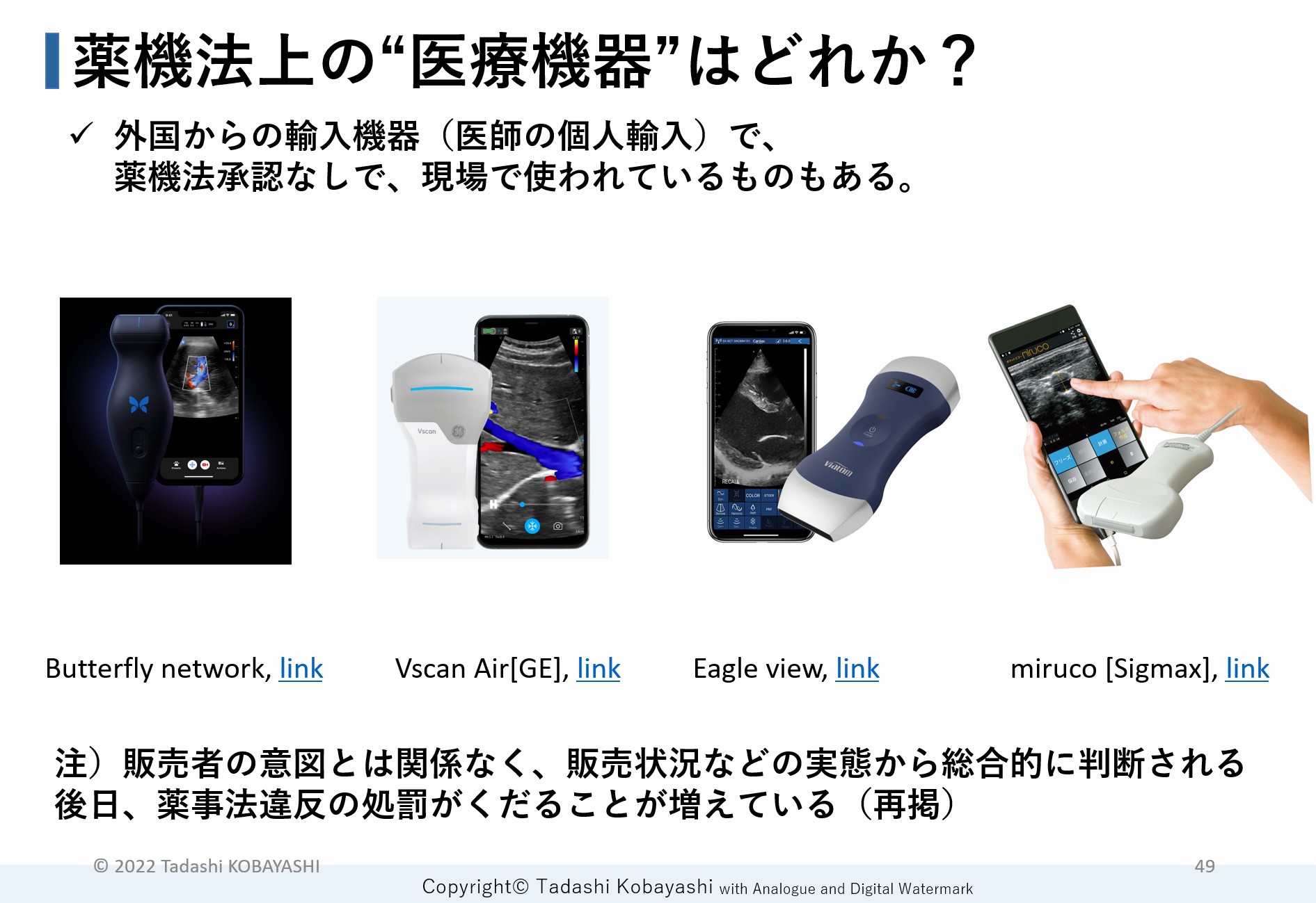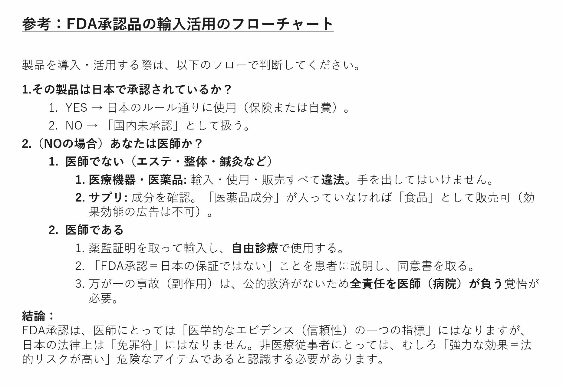 - 輸入機器を使用した医療行為(FDA承認、日本未承認の扱い)
