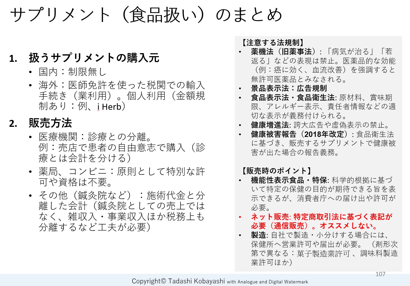 第119回 ウェビナー [マネジメント] 医療法学③ 自由診療の制度・運用(続編) ~サプリ販売、自費リハ、輸入機器、特許権侵害ほか~